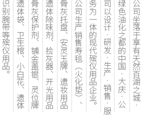 公司秉承“質量為本、我們要做的是唯一、而不是第一”的經營服務理念,堅持以誠信為先、服務至上、創(chuàng)新發(fā)展為立業之本,以鄭重的承諾和完善的服務為信譽保證,不斷專研、開發(fā)、生產出盡善盡美的高科技殯儀產品...
